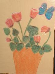 Ein misslungener Versuch mit Kreide zu malen, es sollten Alpenveilchen werden (August 2008)